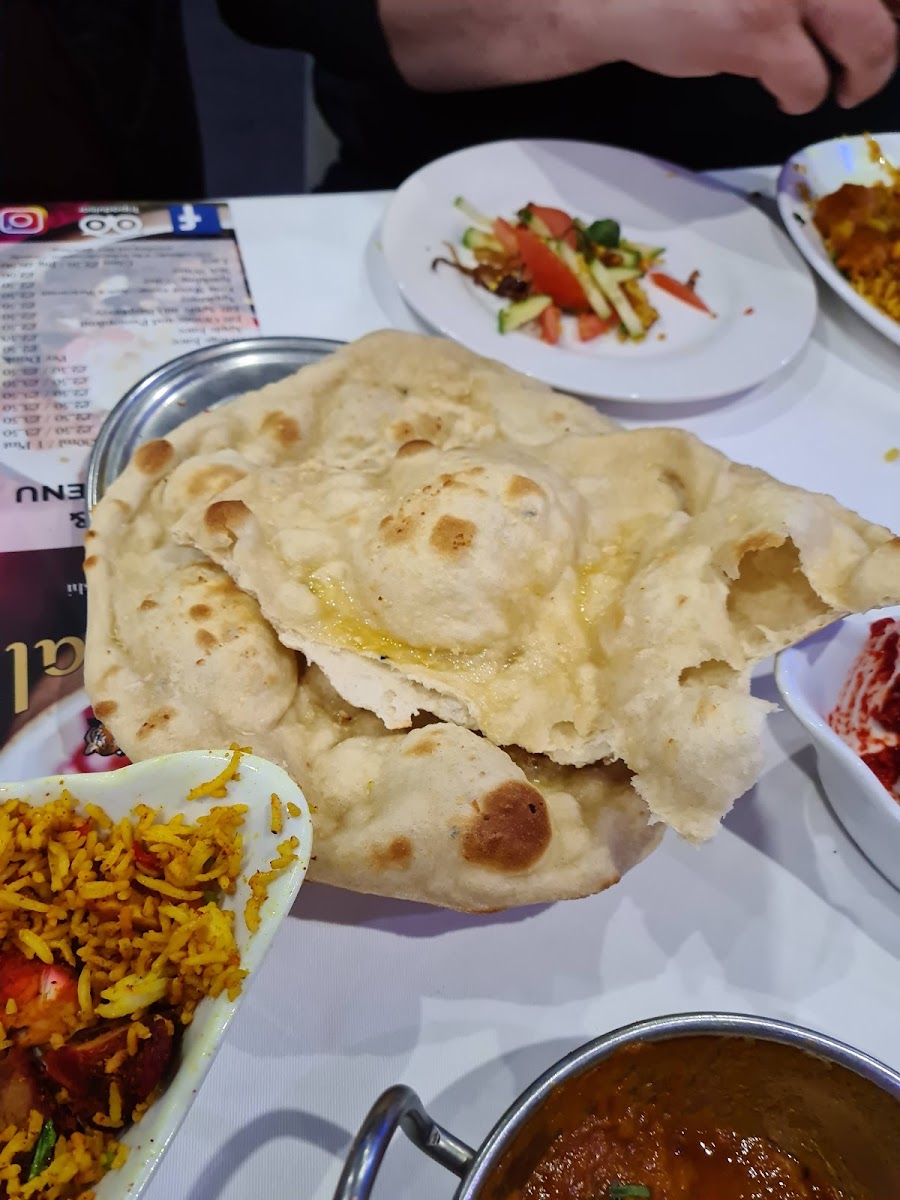 Garlic Naan: Perfectly baked with a garlic infusion, this naan pairs well with any curry on the menu.